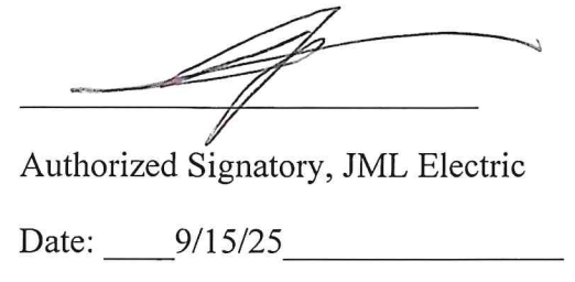 This policy has been approved by JML Electric management and is effective as of 9/15/2025